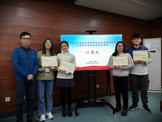 经过激烈的角逐,公司选手凭借踏实的基本功、创新的教学设计、出色的教学技能、以及英文歌曲、简笔画、乐器演奏、配音、戏剧表演等精彩的个人风采展示,王雨诗荣获一等奖,吴凡、蒋仁杰荣获二等奖,向雅洁荣获三等奖。