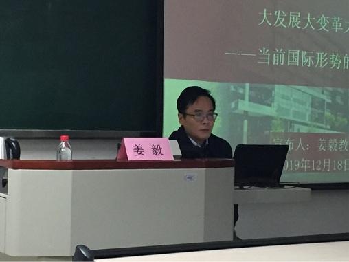姜毅老师首先梳理了1909年至今的百年中国际社会纵横交错的变化格局,之后点出了当今国际秩序面临着两大变化因素,即新兴经济体的发展以及中国的崛起。紧接着,姜老师在讲座中为同学们分析了世界大变局中的现象以及背后的原因,深入分析了逆全球化浪潮现象以及当今世界保护主义抬头的原因和后果。剖析了俄罗斯、美国两个大国近些年来的战略动态以及中国的外交政策。姜毅研究员用“困境中打拼大国地位”作为形容俄罗斯现状的引子。之后详细阐述了俄罗斯在冷战结束以后经济发展缓慢甚至停滞的原因,以及近些年在外交层面上作出的努力。以美国为例,对其在国际上的实力及近些年对外政策的变化做出了阐释和分析。姜老师强调,针对近些年来中国在推行外交政策时的出现一些问题,其背后与复杂变化的国际形势有着密不可分的联系,也希望这些问题能够引发大家的深层思考。