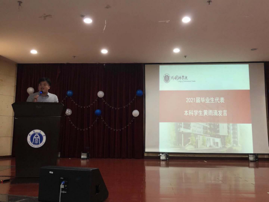 随后,2021届毕业生代表本科生黄雨滴同学发言。黄雨滴同学提到,我们已经步入就业、择业的最后大考阶段,需要及时调整个人的状态,树立自信心,勇于面对挑战。同时,黄雨滴同学分享到,看到有的同学已经签约了工作,自己内心不免有些焦虑,希望自己和还未签约工作的同学们能够稳住心绪,准备好就业所需的各类资料,坚持每天练习说课、讲课,准备好面试、试讲,待时机成熟之际成功签约心仪的工作。
