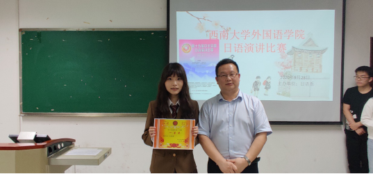 经过激烈的角逐,2018级游千慧同学荣获一等奖;2017级钟悦获二等奖2019级吴睿和洪晨、2018级王曦分别荣获二等奖;2017级李明、沈可、王泽华,2018级朱雨薇、于展浩、2019级李忆莲、伍建生、张颂笛等同学获得三等奖。其中,游千慧同学将作为公司日语专业代表选手参加2020年11月1日由中国教育国际交流协会等主办、公司承办的“第十五届中华全国日语演讲比赛西南地区预赛”。