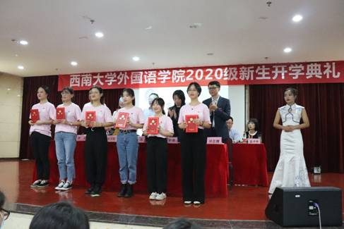 在读本科生代表王虹静同学在发言中亲切地与新生交流学习经验,她从三个“笑对改变”的层面,为新生适应新的老员工活提出了有效的建议;研究生新生代表刘璐同学在发言中回忆了今年疫情时期考研之路的艰难过程,表达了对师长和家人的感谢,希望外院学子能一起共克时艰,敞开怀抱迎接即将开启的老员工活。