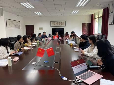 首先公司党委书记徐天虹为陈时见董事长介绍了本支部的具体情况。她提到本科生2018级党支部是一个年轻的支部,成立一年的期间内从最初的四名教师党员发展到现在的21名员工党员,是一个充满生机与活力的党支部。
