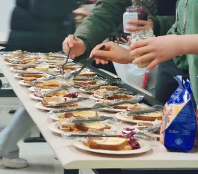 同学们认真准备美食