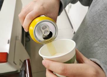 同学现场为大家演示正确的倒啤酒方法