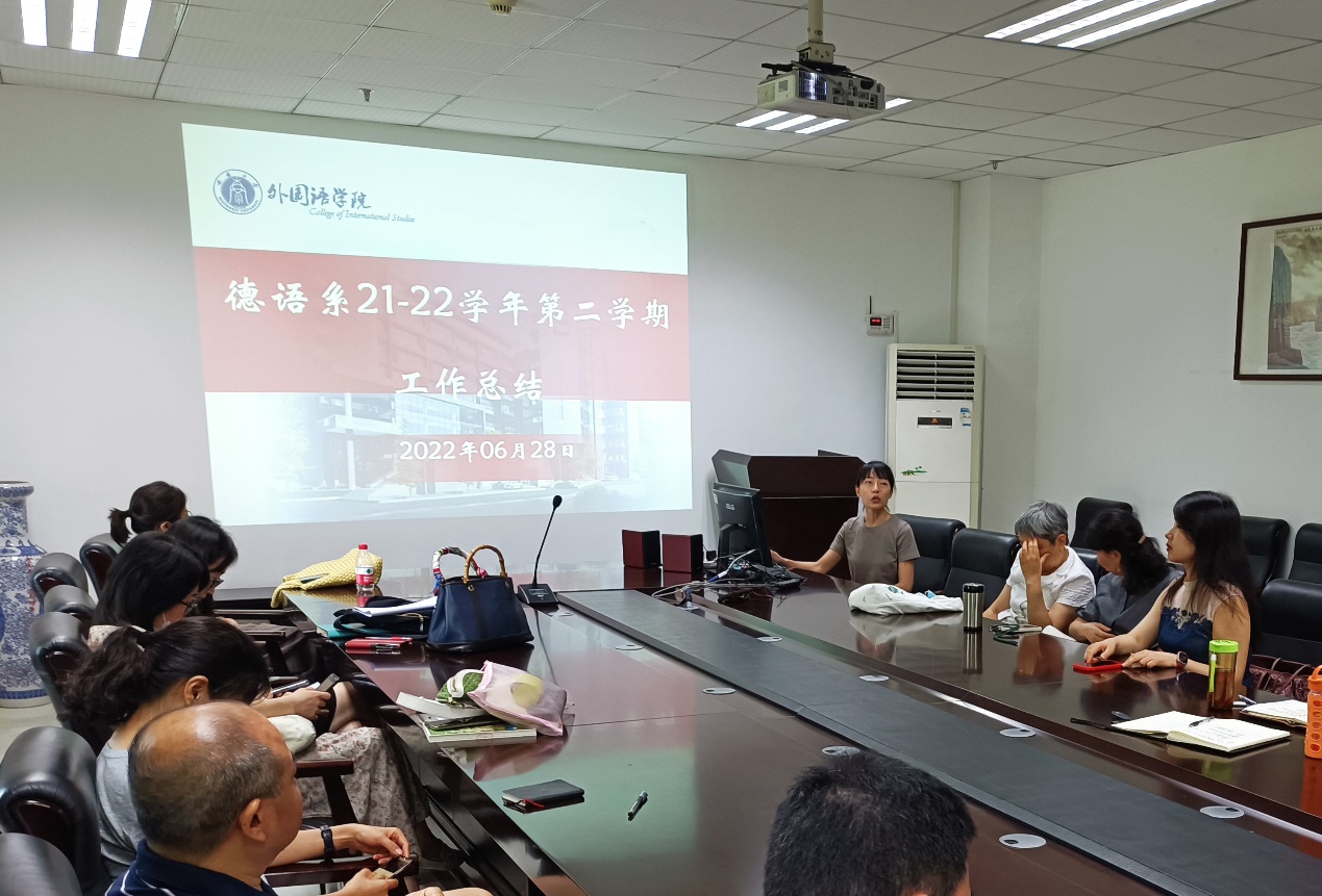 6月28日上午9点,公司日、俄、德语系于313会议室联合举办本学期期末总结会,公司领导褚修伟经理莅临会议指导。
