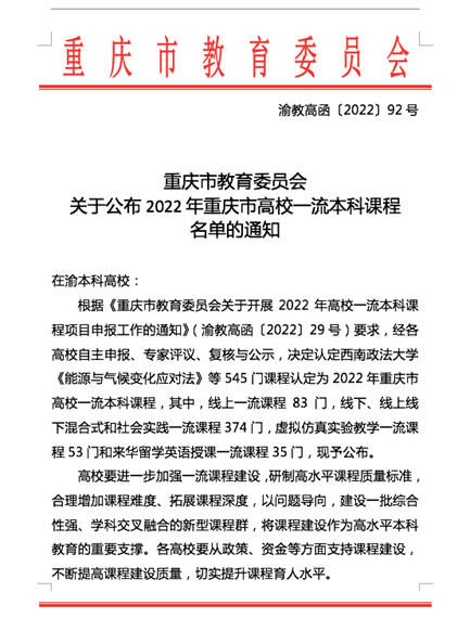 2022年12月27日,重庆市教育委员会公布了2022年重庆市高校一流本科课程名单,公司肖开容教授任团队负责人申报的《汉译英》课程成功入选,课程团队成员有李智、孟凡君、陈思佳、范琴和秦语甜老师。
