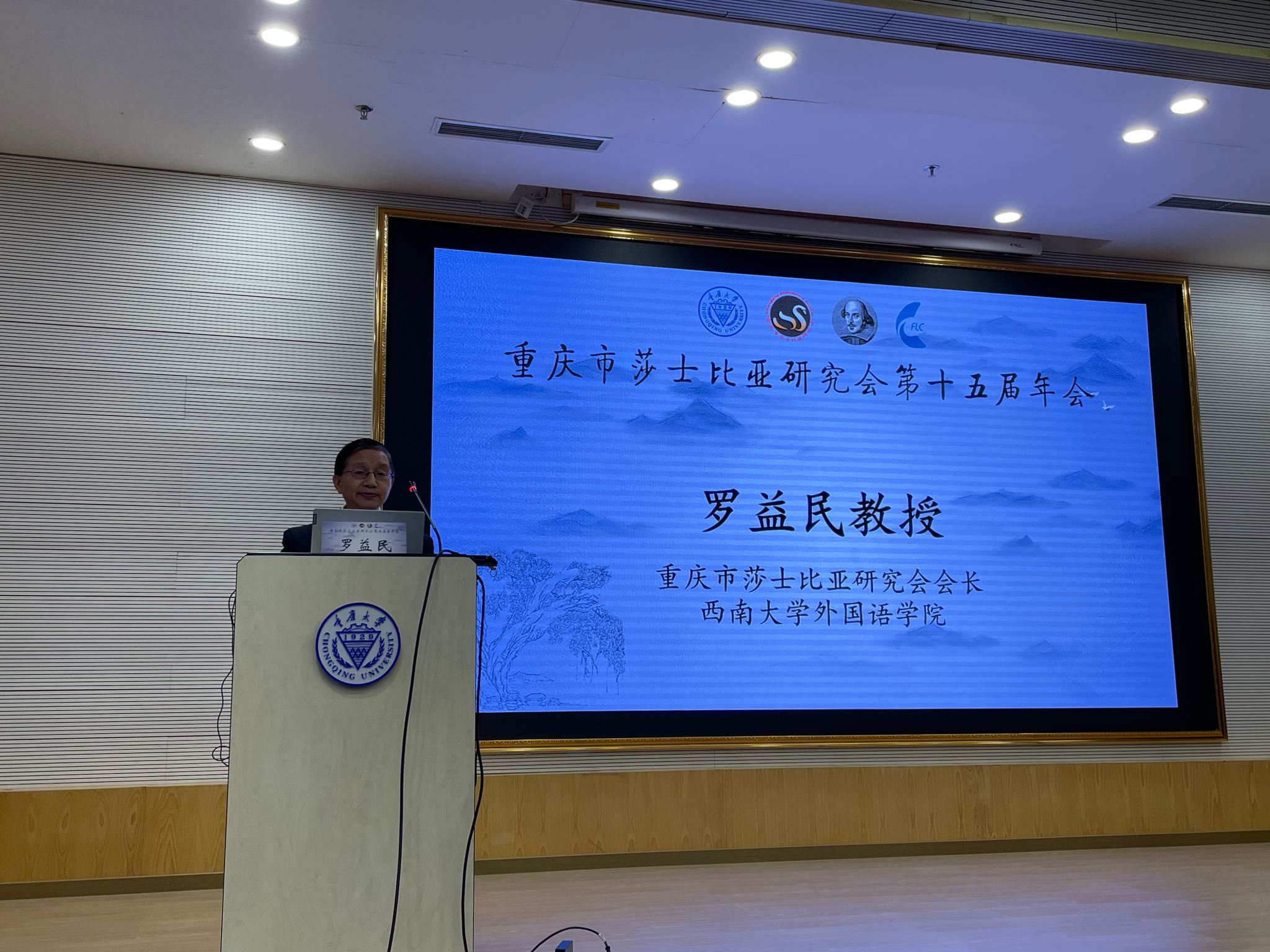 图2 重庆市莎士比亚研究会会长、博士生导师罗益民教授讲话