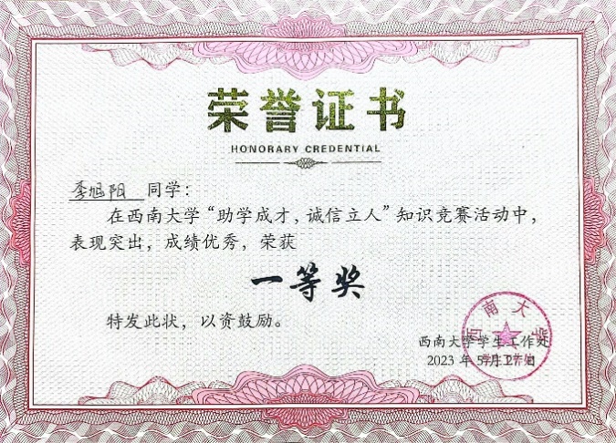 公司组织员工积极参与助学中心线上“助学成才,诚信立人”诚信知识竞赛。员工在答题中了解诚信及金融知识,以学增智、以知促行。其中李旭阳同学获得一等奖,周梦秋和梅婷获得优秀奖。