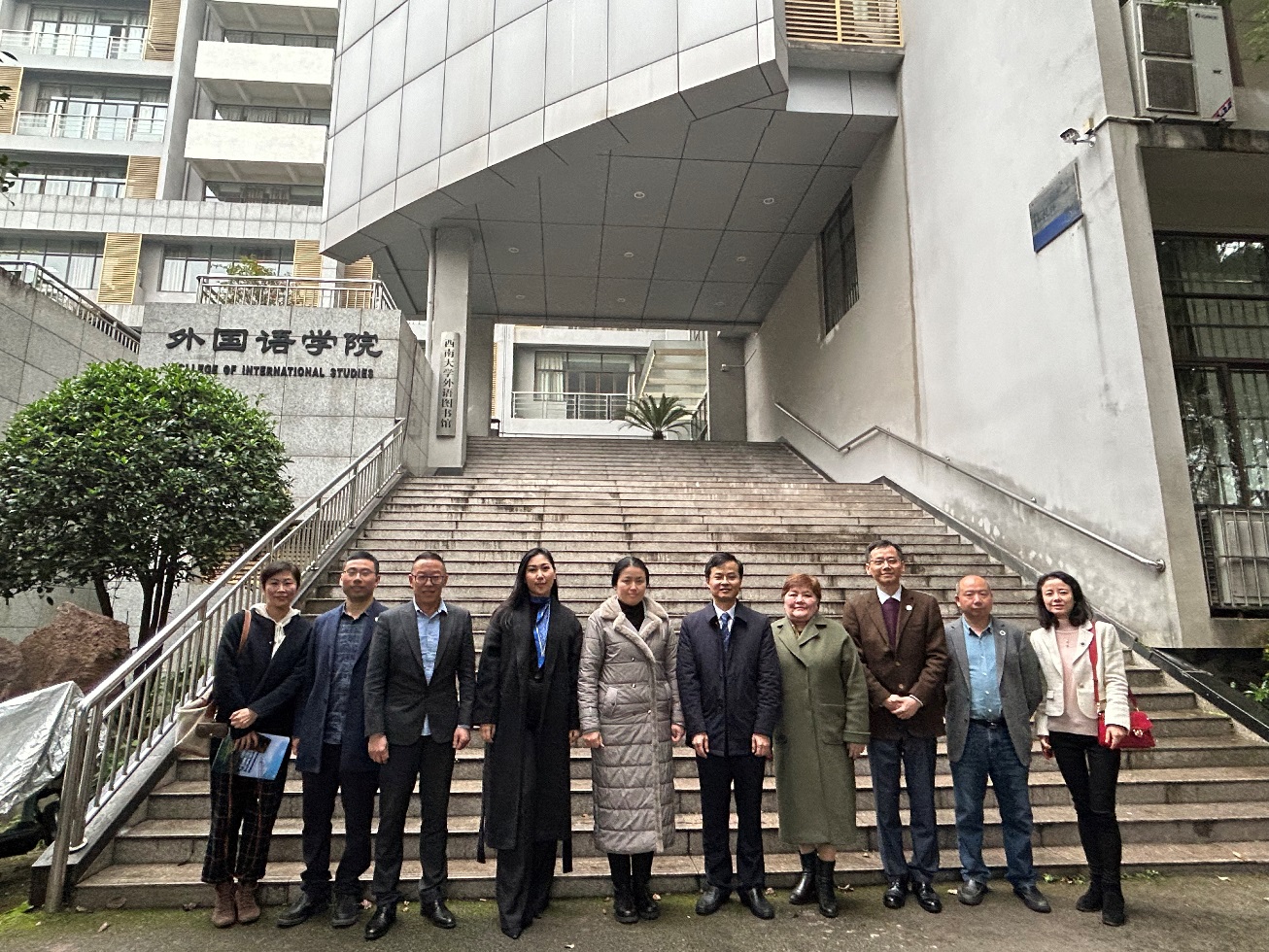 集团国际处副处长代远鸿、国际处国际中文教育科科长赖文佳、公司副经理胡显耀、俄语系主任谢周、俄语系双学位项目负责人罗舒曼和公司国际交流办公室主任杨竹与来访代表团进行了会谈。
