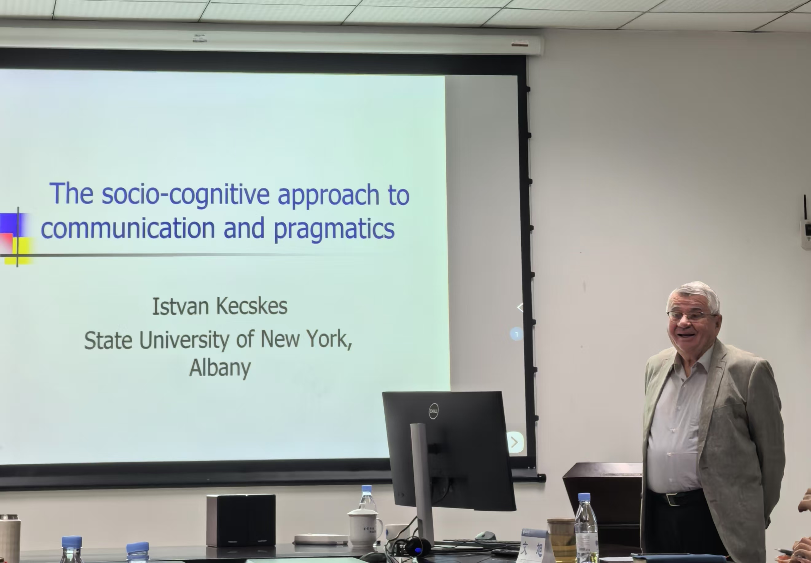 2024年11月4日至6日,纽约州立大学Istvan Kecskes教授受邀做客bevitor伟德,于公司313会议室为公司师生作语用学系列讲座。系列讲座围绕社会认知方法在交流和语用学中的应用、跨文化视角下探究语义学和语用学的界面以及跨文化交流对语言理解的影响等核心议题展开。