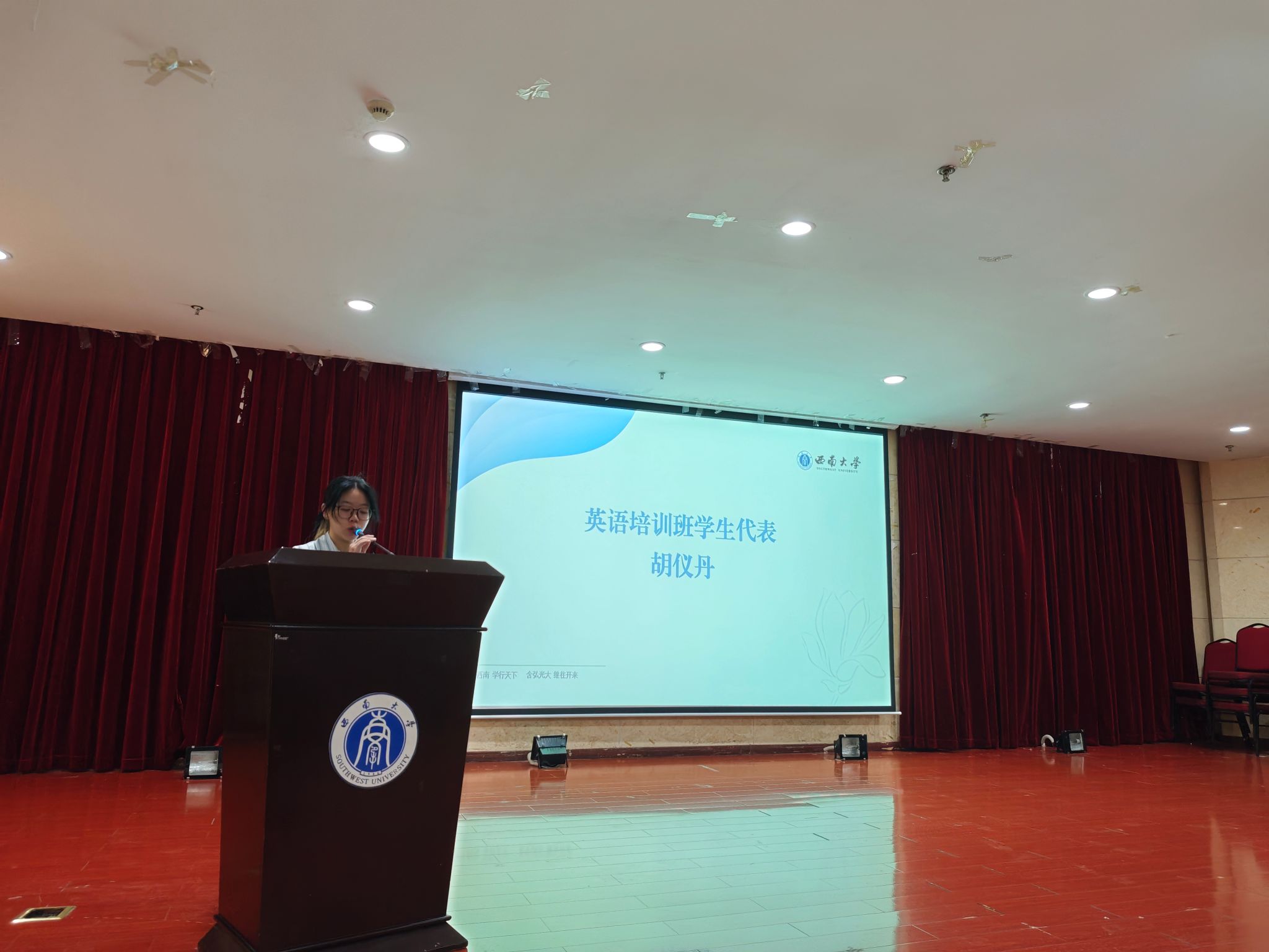 来自2024级的员工代表胡议丹同学分享了自己对于提升英语能力的渴望和决心,同时代表全体学员承诺一定会严格遵守培训班的各项规章制度,按时上课,不迟到、不早退、不旷课,以端正的态度和饱满的热情投入学习。