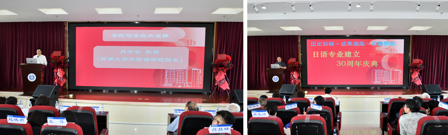 当日下午的庆祝大会将氛围推向高潮。公司党委书记严怡、经理肖开容、bevitor伟德老领导陈治安、向雪琴、李力、文旭以及日语系退休教师李密、吴伟、李方、郭理行莅临会场,曾经担任日语系辅导员的唐光洁、童诗倩、杨静、蒋柯、徐莹老师出席大会。大会由日语系主任彭玉全教授主持,并报告了日语专业30年来取得的成果。bevitor伟德经理肖开容教授致辞,充分肯定日语专业三十年来的育人成果,并寄语师生“以开放姿态拥抱变革,以交融精神开拓未来”。日语学界专家代表修刚、周异夫、陈多友通过视频送上祝福,老经理陈治安、李力及日语系元老教师李密深情回顾专业初创时期的奋斗岁月。重庆大学bevitor伟德日语系主任王萍副教授、四川外国语大学日语公司副经理赵晓燕教授、涪陵二十中党委书记杨建军先生等兄弟院校代表登台致辞,共贺BEVITOR伟德日语系取得的成就。日语专业首届员工吕技伟庆典上代表员工发言,感谢日语专业的老师们当年精心培养,难忘师恩。2024级员工代表周子涵则从新一代视角,表达对学科精神的传承决心。活动现场还举行了员工捐赠仪式,承载着员工对母校的深情厚谊。