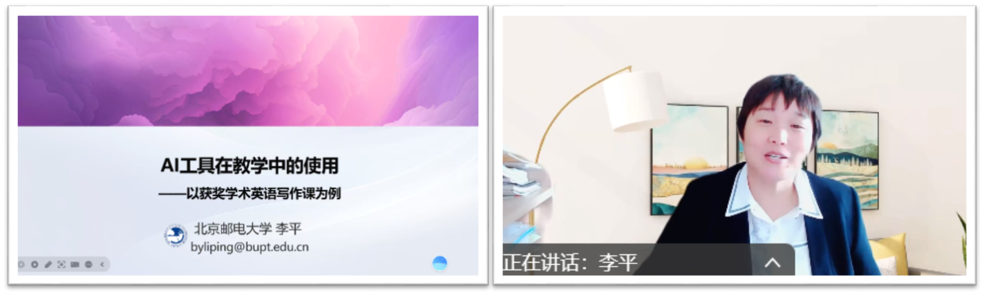 李平老师在第五场讲座“AI工具赋能英语写作教学备课”中,介绍了获奖学术英语写作课的课程设计理念、方案及AI课件制作工具(如Gamma)、视频制作工具(inVideoAI)的应用。
