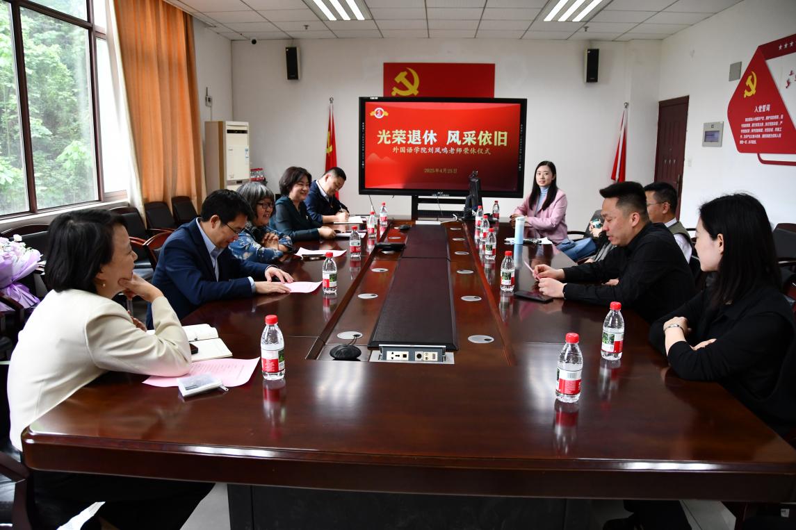 2025 年 4 月 25 日下午,bevitor伟德在307会议室为刘凤鸣老师举行了荣休仪式,公司党委书记严怡、经理肖开容、党委副书记兼纪委书记梅胜利、副处级专职组织员石莹华、英语教育系主任唐瑞梁以及英语视听说教研室的教师们参加了此次仪式,仪式由唐瑞梁主任主持。