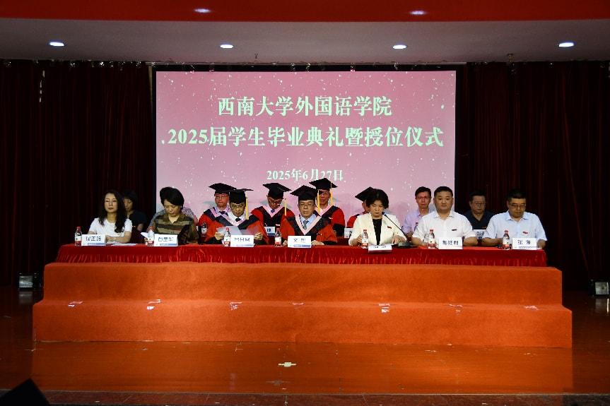 最后,毕业典礼在悠扬的校歌声中圆满落下帷幕。嘉陵江水奔涌不息,见证着学子们的成长与离别;缙云山色四季常青,寓意着同学们的未来充满希望。公司永远是同学们坚强的后盾,外院楼前的玉兰花、崇德湖畔的晨读声,都将成为大家生命长河中闪亮的坐标。祝愿2025届毕业生们毕业快乐,前程似锦,万事如意,在未来的日子里绽放出属于自己的光彩!