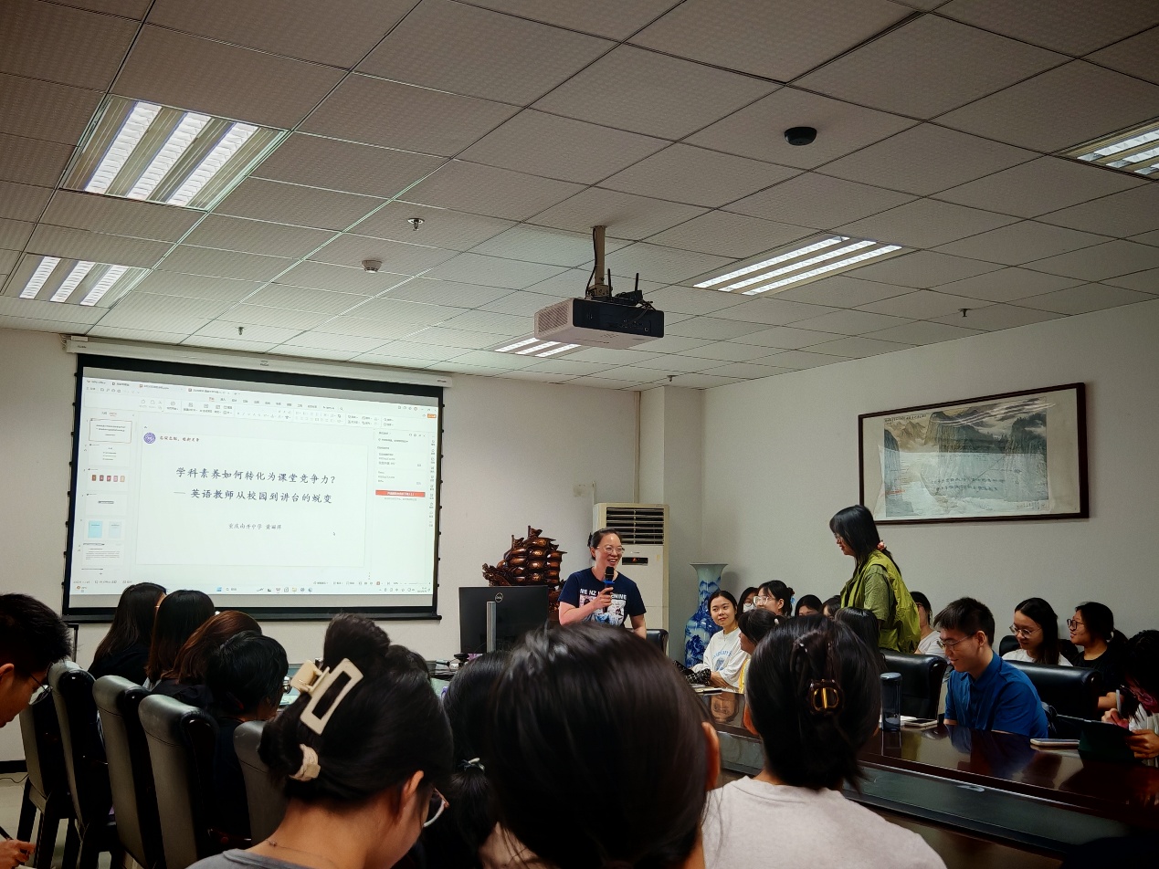 8月30日上午,重庆南开中学英语教研组组长黄丽萍老师应邀莅临公司,于313会议室为毕业生求职助力,带来了一场题为“学科素养如何转化为课堂竞争力——一名英语教师从校园到讲台的蜕变”的精彩讲座。讲座聚焦一线教学经验与教师校园时期成长路径,探讨学科素养的课堂转化机制,吸引众多员工到场聆听,现场座无虚席。活动由研究生辅导员许安琪主持。