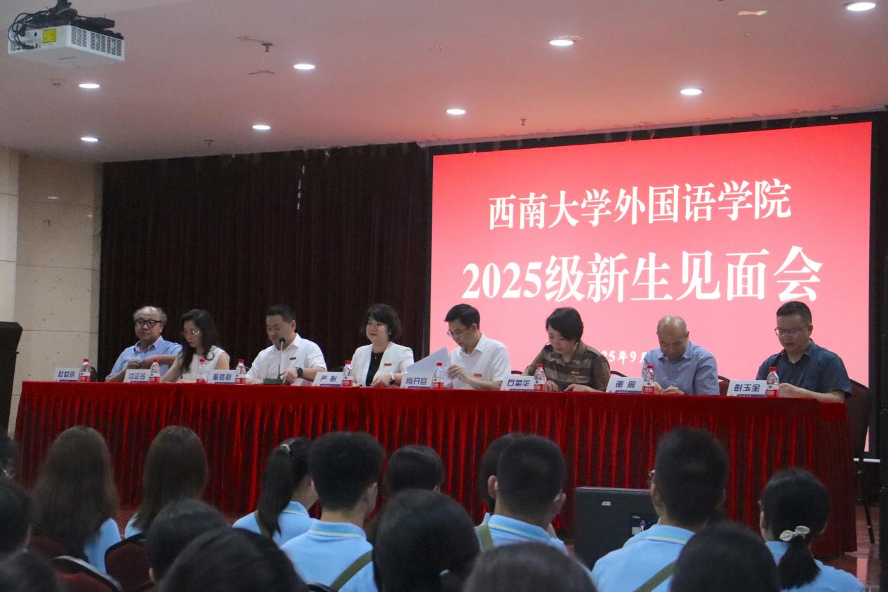 最后,经理肖开容教授在讲话中,以公司自20世纪40年代以来的发展脉络为引,系统梳理了团队建设、团队力量与科研成果的情况。面向新生,他提出四点期望:在语言深处探索人文回响,构建跨学科知识谱系,在实践中锤炼真知,以专业能力服务时代需求。肖经理特别强调,外语学子当以“心怀家国、融通中外”为使命,努力成长为堪当民族复兴大任的时代新人。