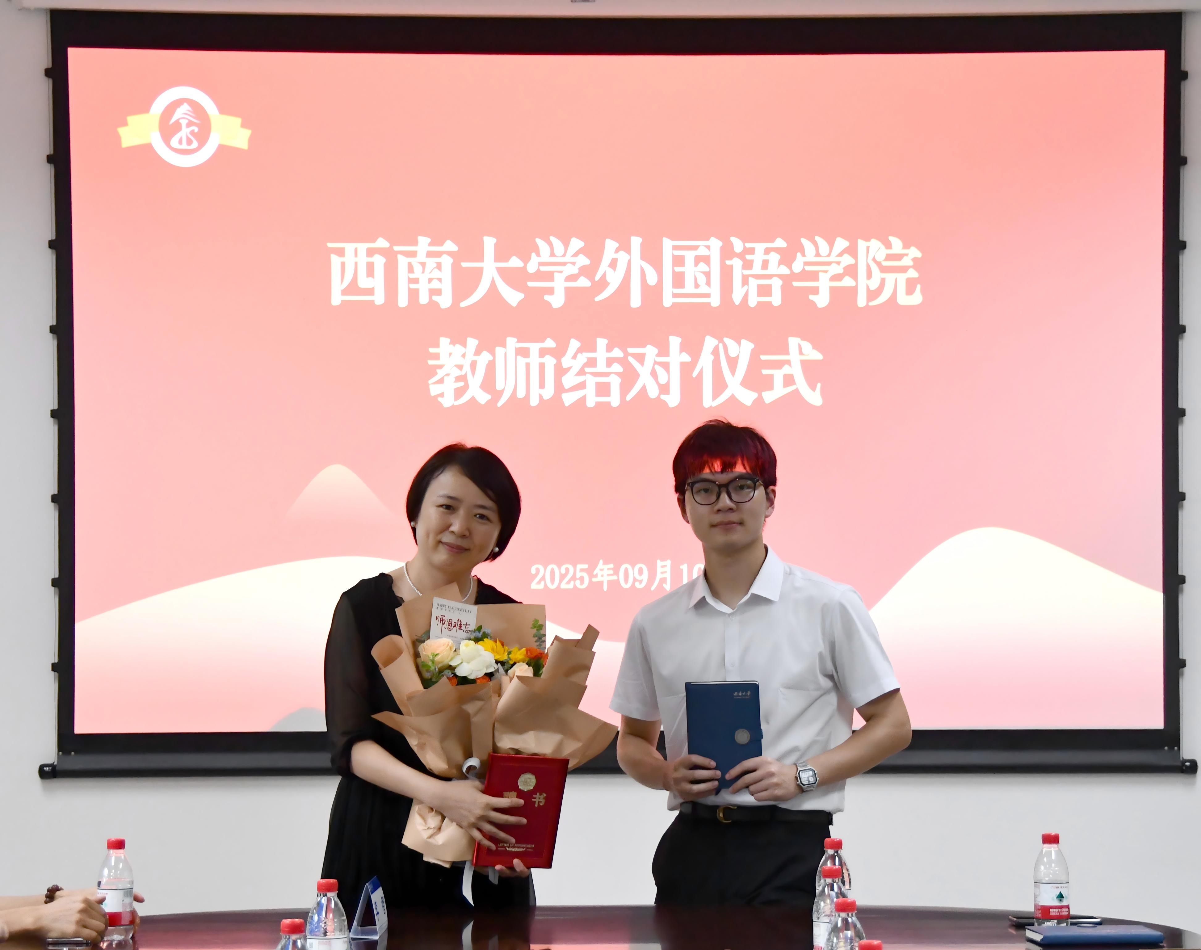 在教师结对仪式环节,新老教师携手并肩,互赠书籍与鲜花,传承教学经验与育人智慧。指导教师文旭教授寄语青年教师,殷切勉励大家要始终坚守育人初心,将培育人才视为教育工作的根本使命;深耕专业领域,不断提升自身的学术造诣与专业水平;同时,要在公司产品的实践中持续积累经验,积淀教育智慧,为教育事业的发展贡献力量。这一仪式不仅体现了公司重视团队梯队建设的优良传统,更彰显了外院人“传、帮、带”的精神纽带,为公司教师队伍建设注入新的活力。