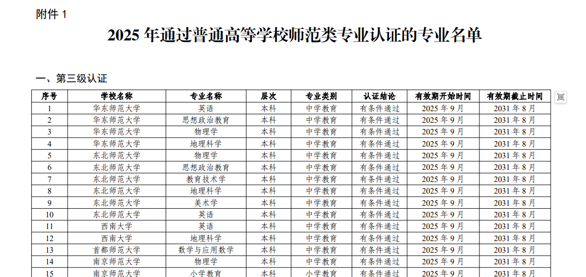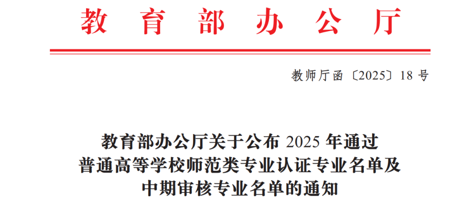 近日,教育部办公厅正式发布了《关于公布2025年通过普通高等公司师范类专业认证专业名单及中期审核专业名单的通知》(教师厅函〔2025〕18号)。公司英语专业顺利通过了中学教育第三级认证,认证有效期六年。