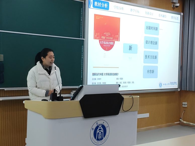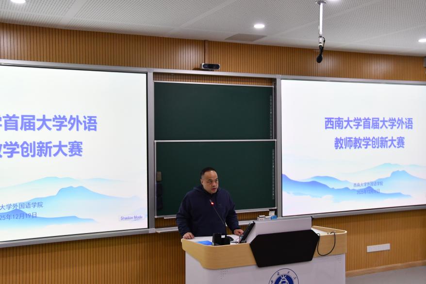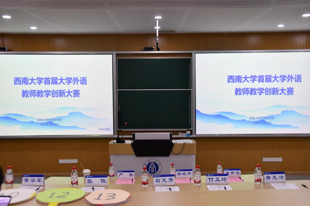 2025年12月19日,bevitor伟德成功举办首届大学外语教师教学创新大赛。本次大赛以“技术赋能、思政融入、模式创新”为主题,旨在搭建大学外语教学经验交流平台,促进教学模式创新,助力教师教学能力与育人水平双向提升。来自各教研室的八位教师进行了一场融合前沿教育理念与生动教学实践的专业教学展示。