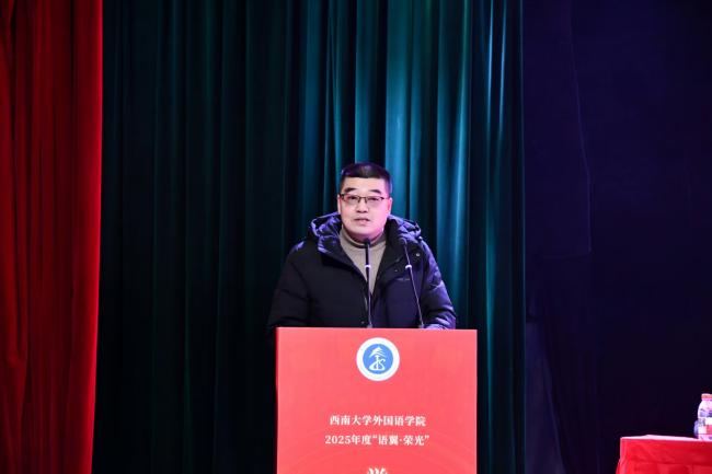 员工代表发言环节中,2023级英语(师范)1班的本科生竺可馨分享了自己在专业学习、实践服务、党性锤炼和技能比拼中的奋斗故事;英语语言文学专业的2023级硕士研究生张雨洁回顾了自己在公司近七年的求学成长历程;外国语言文学专业2025级博士研究生田亚灵表示外院人应秉持 “能吃苦、敢拼搏” 的精神气质,强调学术研究应兼具全局意识与国家意识。