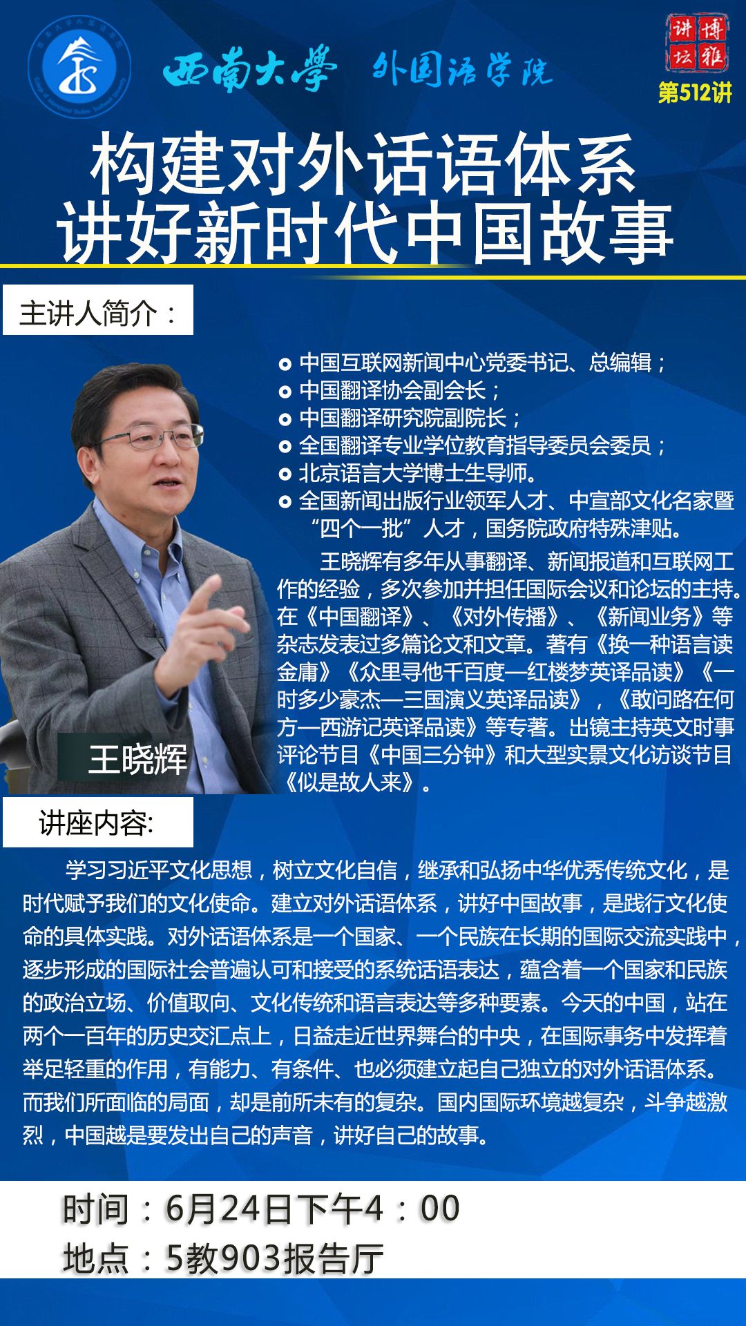 博雅讲坛512讲 构建对外话语体系,讲好新时代中国故事