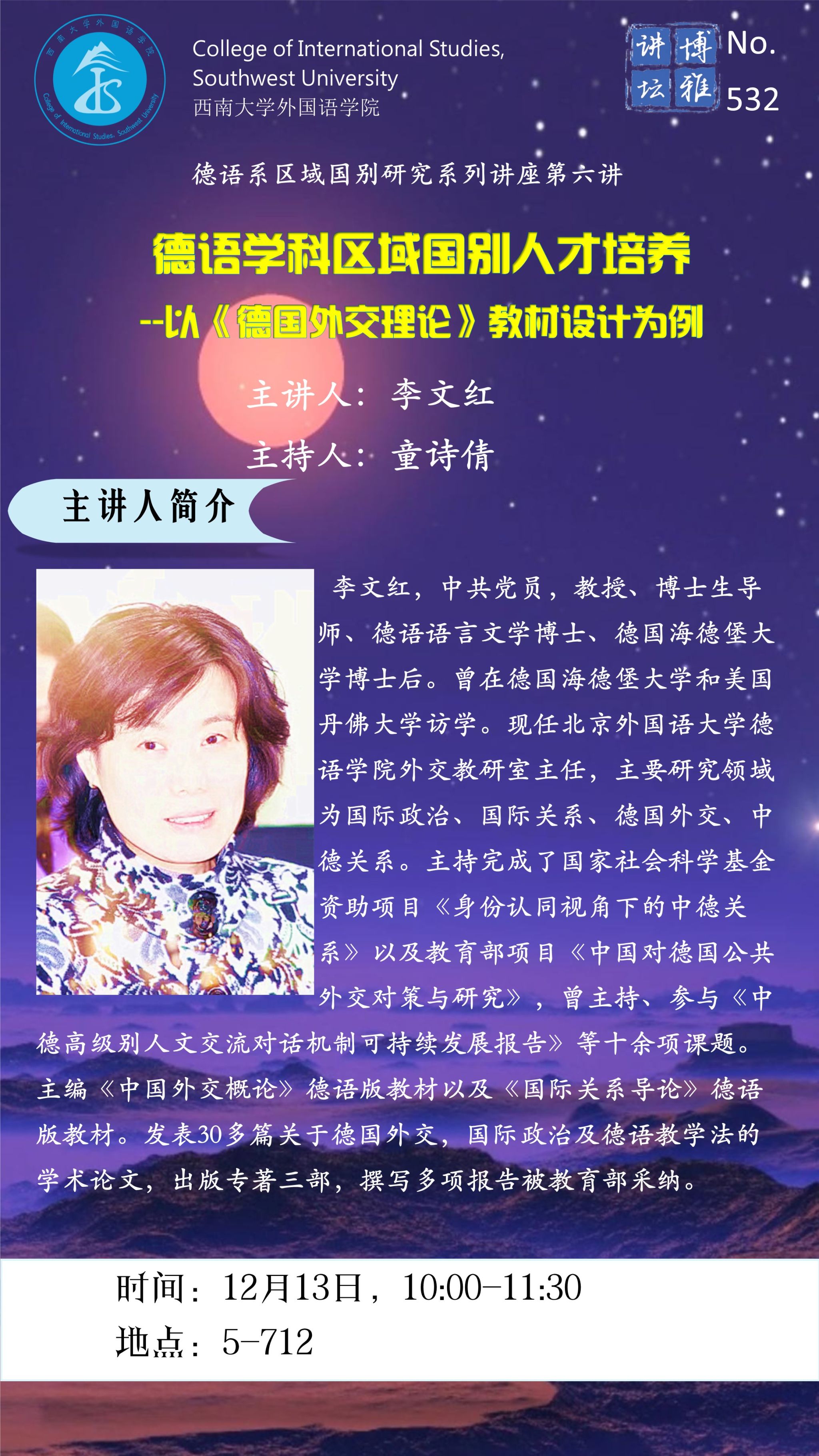 【博雅讲坛】No.532 德语学科区域国别人才培养--以《德国外交理论》教材设计为例