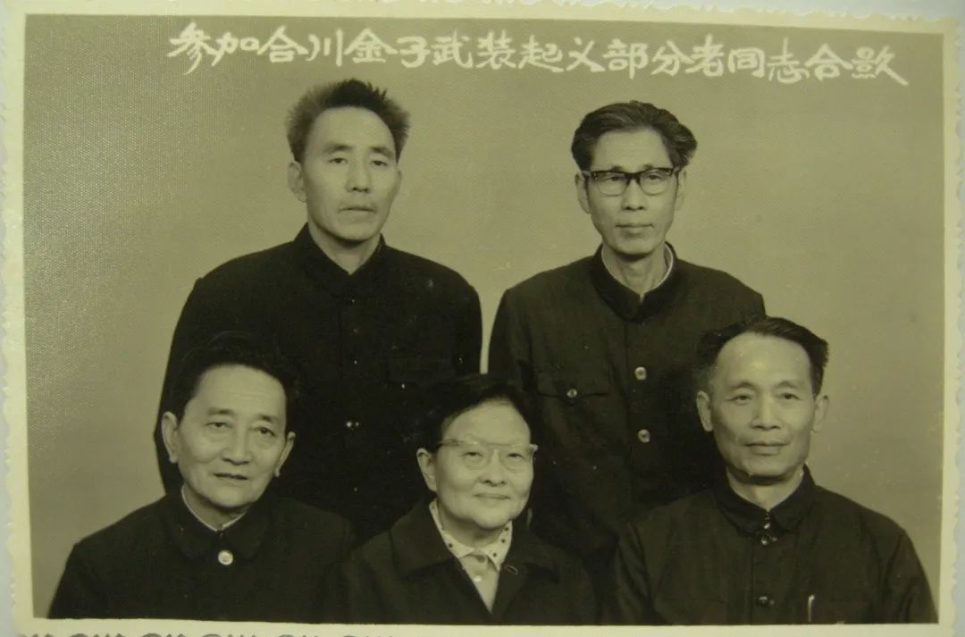 陈伯纯(前排左一)与参加金子沱武装起义的部分老同志合影。