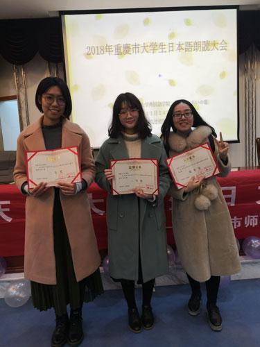 11月24日,bevitor伟德3名员工在吴丹老师的带领下,参加了在重庆师范大学举办的"2018年重庆市老员工日文朗诵比赛"。经过角逐,公司日语专业2016级员工冯丹晨获得日语专业三年级组一等奖、2017级员工张舒萌获得日语专业二年级组二等奖;2016级英语专业员工李菁获得非专业组比赛优秀奖。公司组织了20名师生前往观摩比赛。