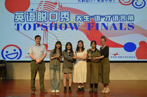 5月7日,天生“语”才TOPSHOW英语脱口秀决赛在东方红会议厅顺利举行。本次脱口秀共有10组选手一路过关斩将挺进决赛。