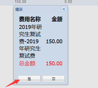 第3步:在跳出费用信息确认窗口(如下图),请确认上面信息准确无误后,点击左下方“是”按钮