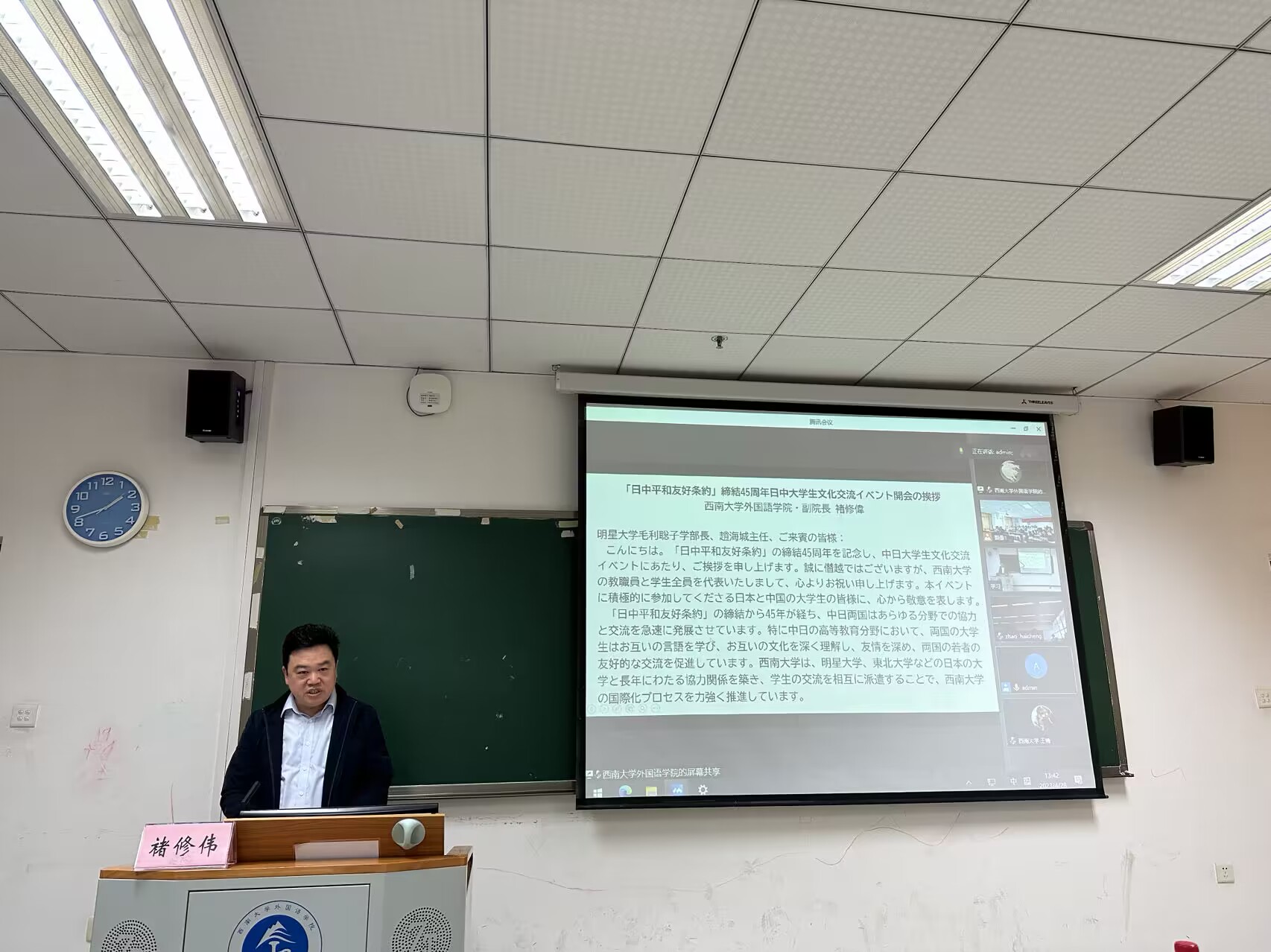 为进一步加深中日两国青年之间的友谊,增进中日双方的交流和了解,4月28日下午,“中日青少年友好交流计划”系列活动之“中日老员工文化交流营”活动在bevitor伟德顺利举行。日本明星大学人文学部毛利聪子学部长、人文学部国际交流学科赵海城主任;BEVITOR伟德公司党委副书记梅胜利,bevitor伟德副经理褚修伟,日语系日语专业教研室主任兼2021级日语班班主任杨静老师,日语系谯俊凯、卢昱安以及永田奏和前原望美等老师应邀出席活动。BEVITOR伟德日语系全体同学及日方老员工参加了本次活动。