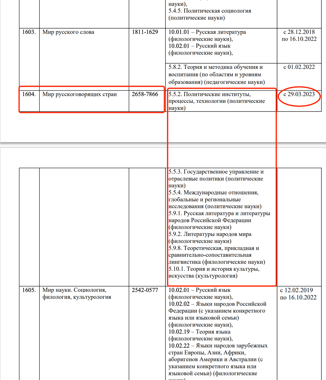 俄罗斯联邦科学和高等教育部下辖的最高鉴定委员会简称“瓦克”(ВАК),是俄罗斯极其重要的高等教育与学术研究监管部门,主要负责制定针对教学科研人员的国家认证政策,履行学位授予、职称评定等职能。按照俄联邦相关管理规定,若要在俄取得副博士学位,一般须在俄联邦科学和高等教育部最高鉴定委员会认定的期刊(即ВАК期刊)上发表3—4篇学术论文;若要取得博士学位,一般须在ВАК期刊上发表15—20篇学术论文。因此ВАК期刊目录也是目前俄罗斯官方认可的、具有极其重要影响的核心学术期刊目录。