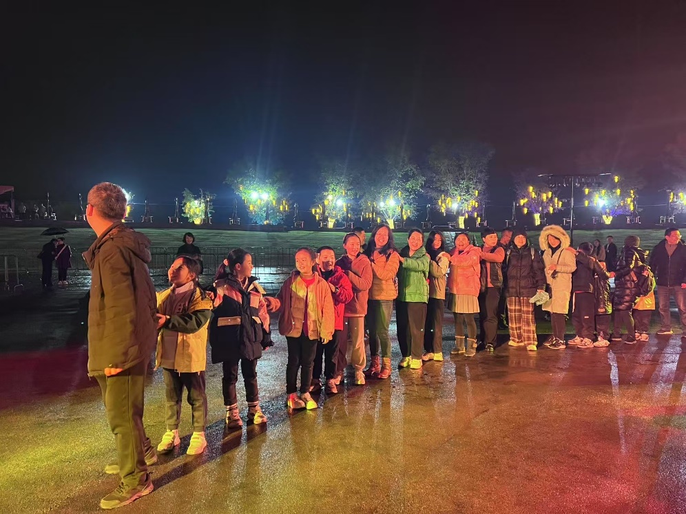 园区内,糖果女孩互动、竹竿舞等日场活动轮番上演,教职工与孩子们积极参与,现场欢声不断。下午16:30,“黑悟空机甲”震撼亮相,篝火晚会与山歌擂台赛点燃热情,传统文化与现代科技碰撞出独特火花。夜幕降临,活动迎来高潮。19:30,以“火壶”“火立方”“炭花棍”等为主题的焰火表演点亮夜空,火裙舞者翩跹如蝶,九龙火炮气势恢宏。教职工们仰望璀璨星空,感受传统技艺的震撼与节日的喜悦。