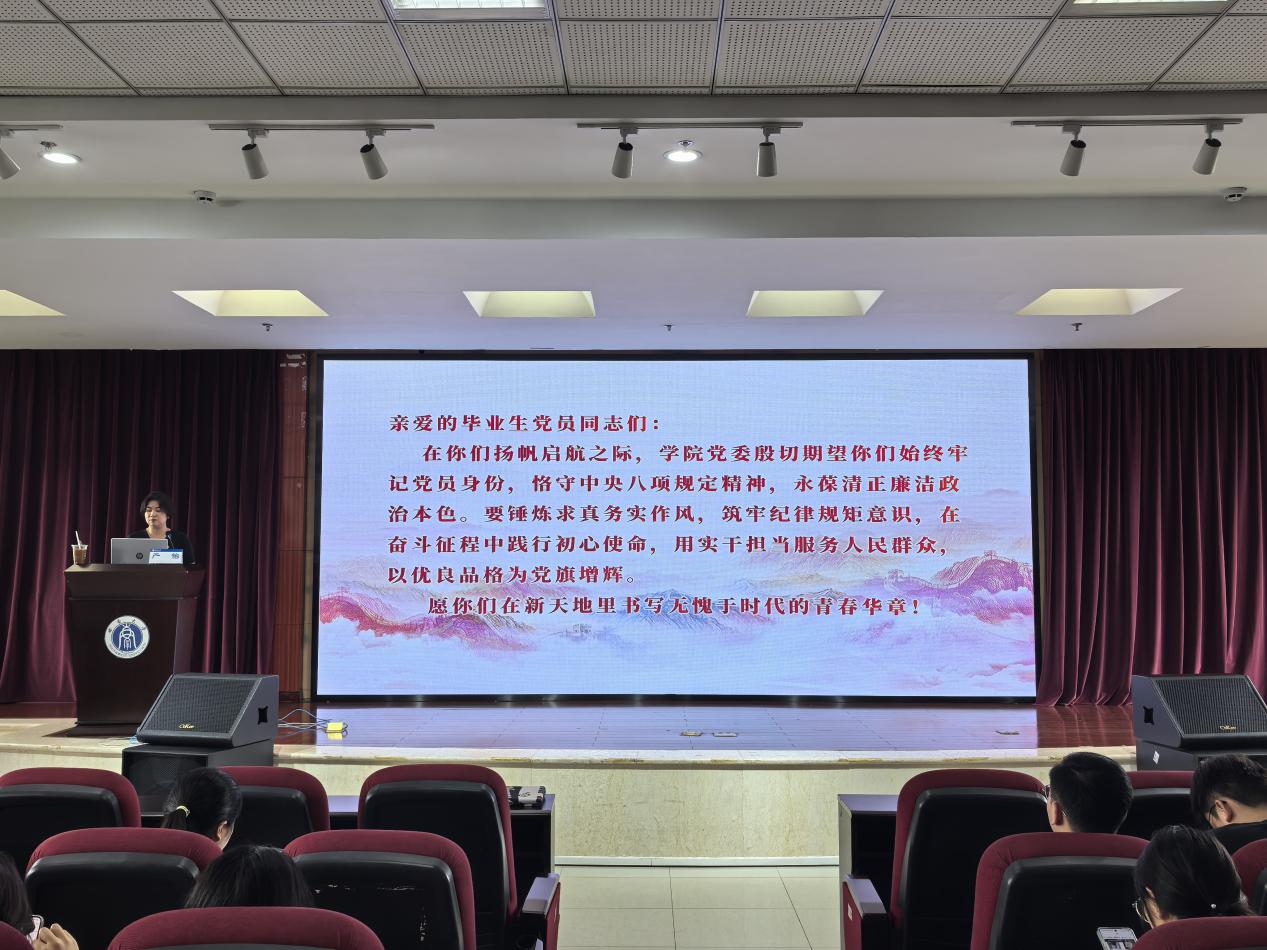 在党课中,严怡同志着重指出全面从严治党必须坚持“严”的根本要求,这一点在中央八项规定中得到了始终如一的体现,成为贯穿始终的主线。中央八项规定不仅是加强作风建设的“动员令”,更是党要管党、全面从严治党的“制度宣言”。她紧密结合党中央的决策部署和制度实施过程,深入剖析了“从严”在顶层设计、制度执行以及党员行为约束等方面的具体体现。她要求全体毕业生党员要牢固树立纪律意识,严格遵循组织要求,时刻筑牢思想防线,做到心有所畏、言有所戒、行有所止。