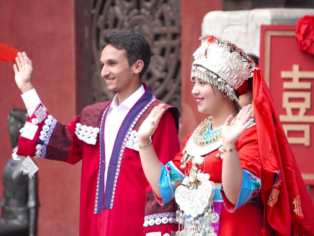 拍摄期间,中外青年共同领略乌江画廊的自然风貌,感受重庆的人文魅力与历史底蕴,大家纷纷拍照记录。在彭水蚩尤九黎城,大家沉浸式感受丰富多彩的民族歌舞与礼仪展演,职工们身着民族服饰,体验当地淳朴热情的民俗文化。